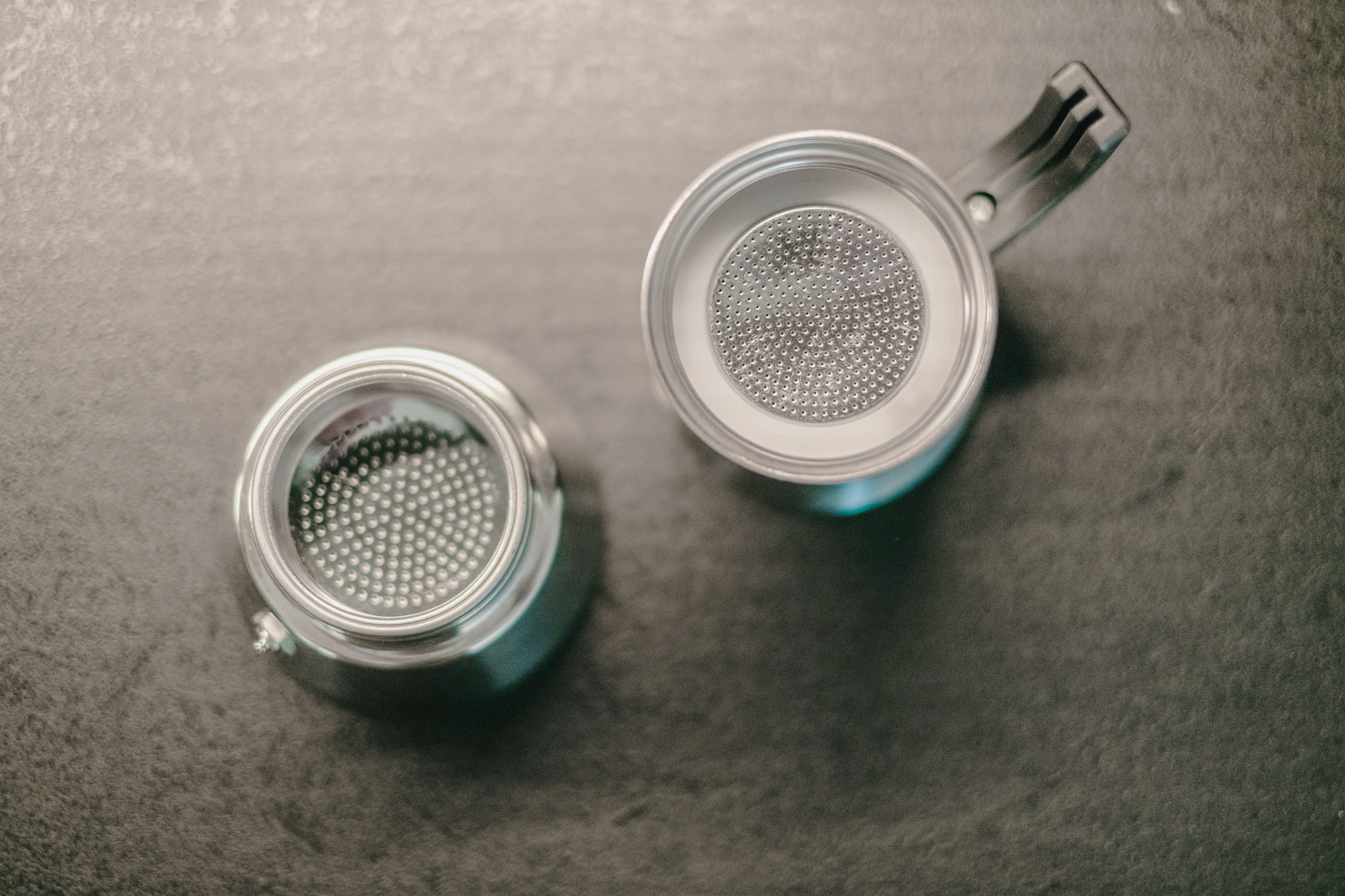 이제 모카 포트의 바스켓에서 악명 높은 커피 찌꺼기에 대해 이야기 해 봅시다. 거기에서 압력 3에 의해 필터를 통과하여 내부에 남아 있던 작은 커피 입자를 찾을 수 있습니다. 바스켓으로 들어가는 유일한 방법은 상단의 좁고 둥근 실린더이기 때문에 스폰지로 제거하는 것은 불가능합니다. 그러나 두려워하지 마십시오. 여기 Urnex Clearly Coffee 가 있습니다 . 체로 바스켓을 청소하려면 좁은 유리 접시에 바스켓을 놓으십시오. 파란색 액체를 붓고 부품이 완전히 잠기도록 합니다. 몇 시간 동안 그대로 두십시오. 남은 커피가 표면에서 벗겨져 파란색 클리너에 떠 있는 것을 보면 작업이 완료된 것입니다! 모카 포트의 다음 요소로 이동할 수 있습니다.