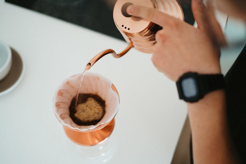 그런 다음 커피가 부풀어 오르고 물질을 방출하며 이산화탄소를 제거합니다. 특히 로스팅 후 이미 며칠이 지난 경우 더욱 그렇습니다. 사전 인퓨전 후 분쇄된 원두는 더 많은 물을 흡수할 준비가 되고 물이 커피에 들어가 흘러내릴 수 있는 채널이 형성됩니다.